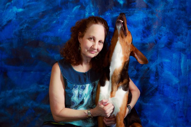 Posted: April 21, 2012 by Judy Licht Photography in UncategorizedMy closest friend from college, Nina, came to town with her dog, Lily. She wanted me to photograph her and her pup. Lily ate tons of tiny little pieces of cheese, as Nina bribed her to sit still — she only almost toppled my computer once, My dog, Roxy, hid her jealousy, and escaped to the yard, as flashes popped and Nina angled herself against Lily constraining her in my tiny studio.